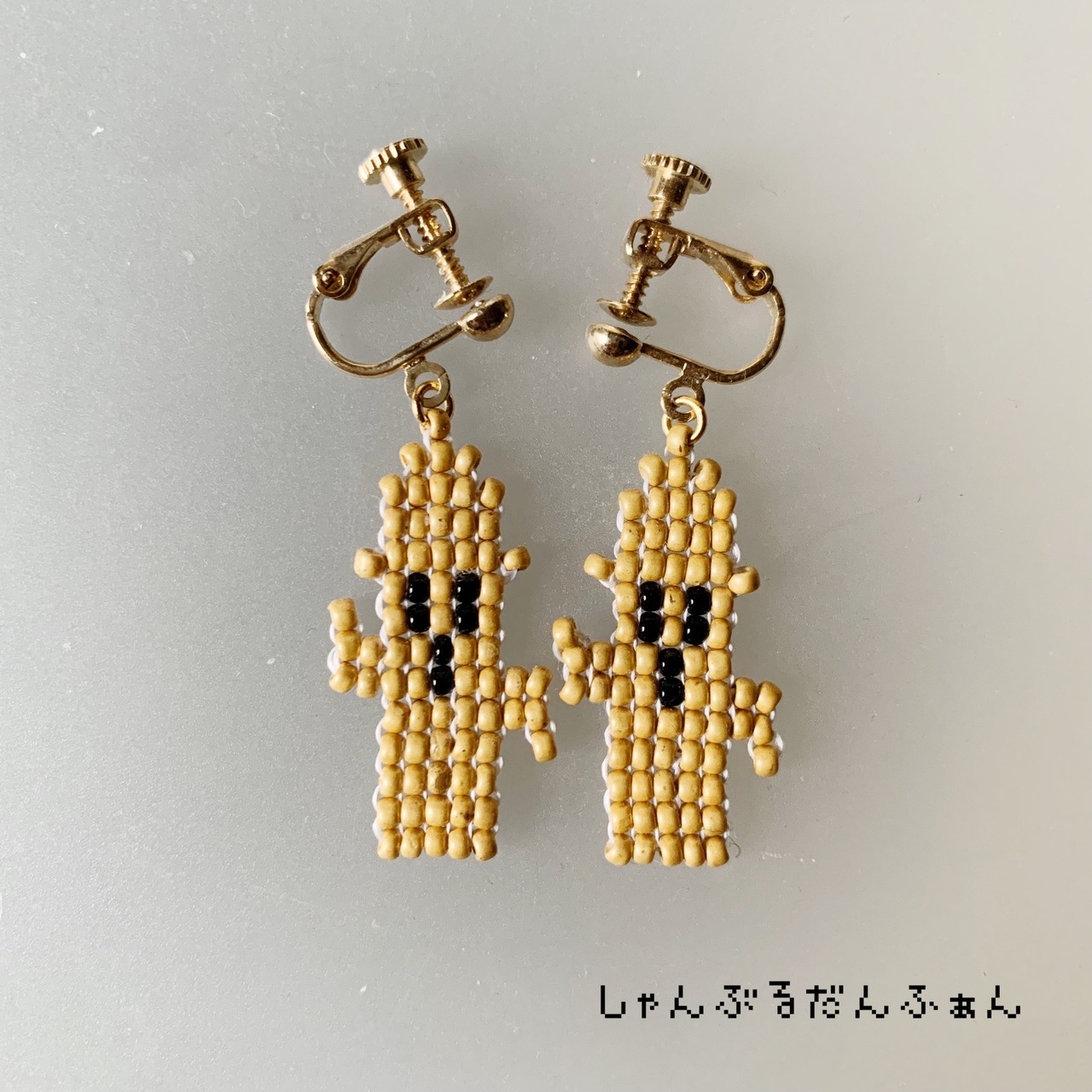 丸小ビーズのスクエアステッチで作った、